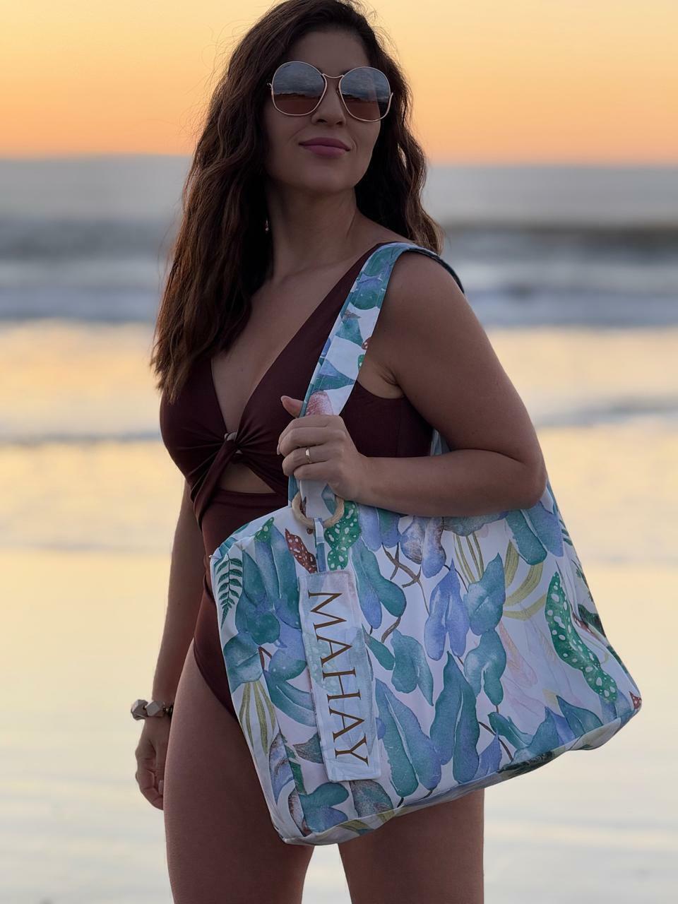 Descubra a praticidade e o charme da Bolsa Praia - Botanical, feita para quem vive em movimento e não abre mão do estilo. Com um tecido impermeável de alta qualidade, esta bolsa funcional protege seus pertences da água e da umidade, perfeita para dias na praia, piscina ou passeios ao ar livre.